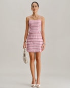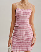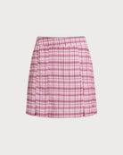 Pembe Ekose Düz Mini Etek