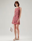 Belltoile™ Kırmızı Ekoseli Yüksek Bel Mini Etek