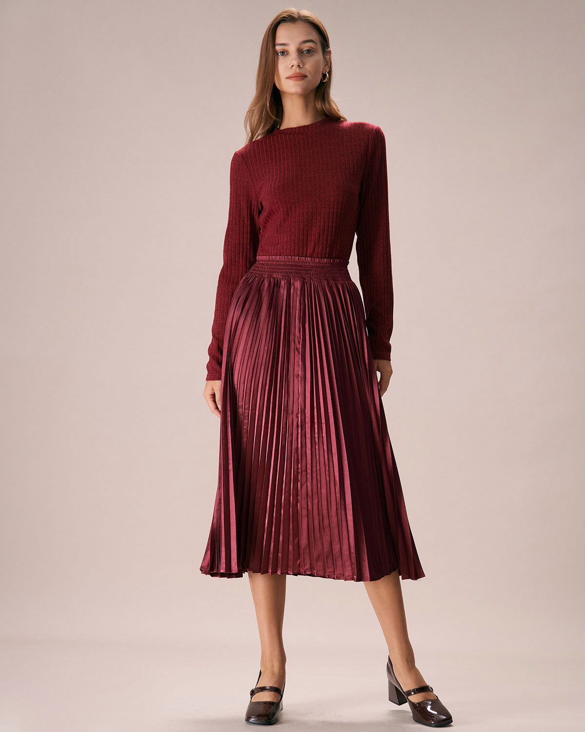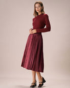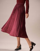 Belltoile™ Şarap Kırmızısı Beli Lastikli Piliseli Midi Etek