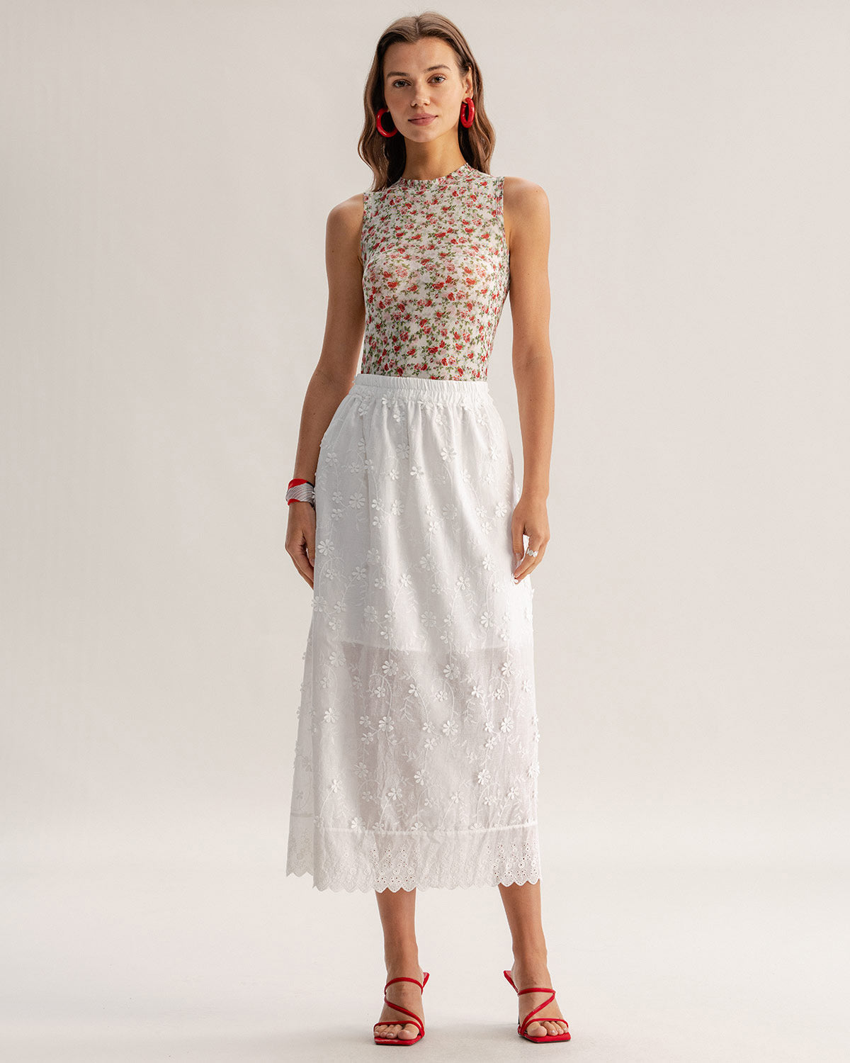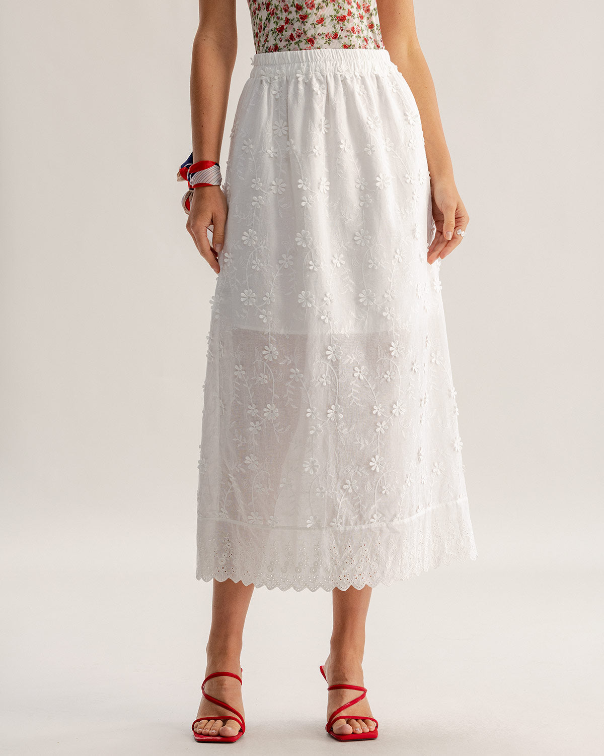 Belltoile™ Beyaz Dokulu Beli Lastikli Midi Etek