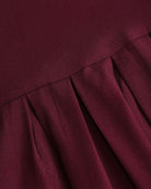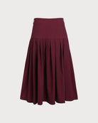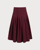 Şarap Kırmızısı Doğal Bel Pileli Midi Etek