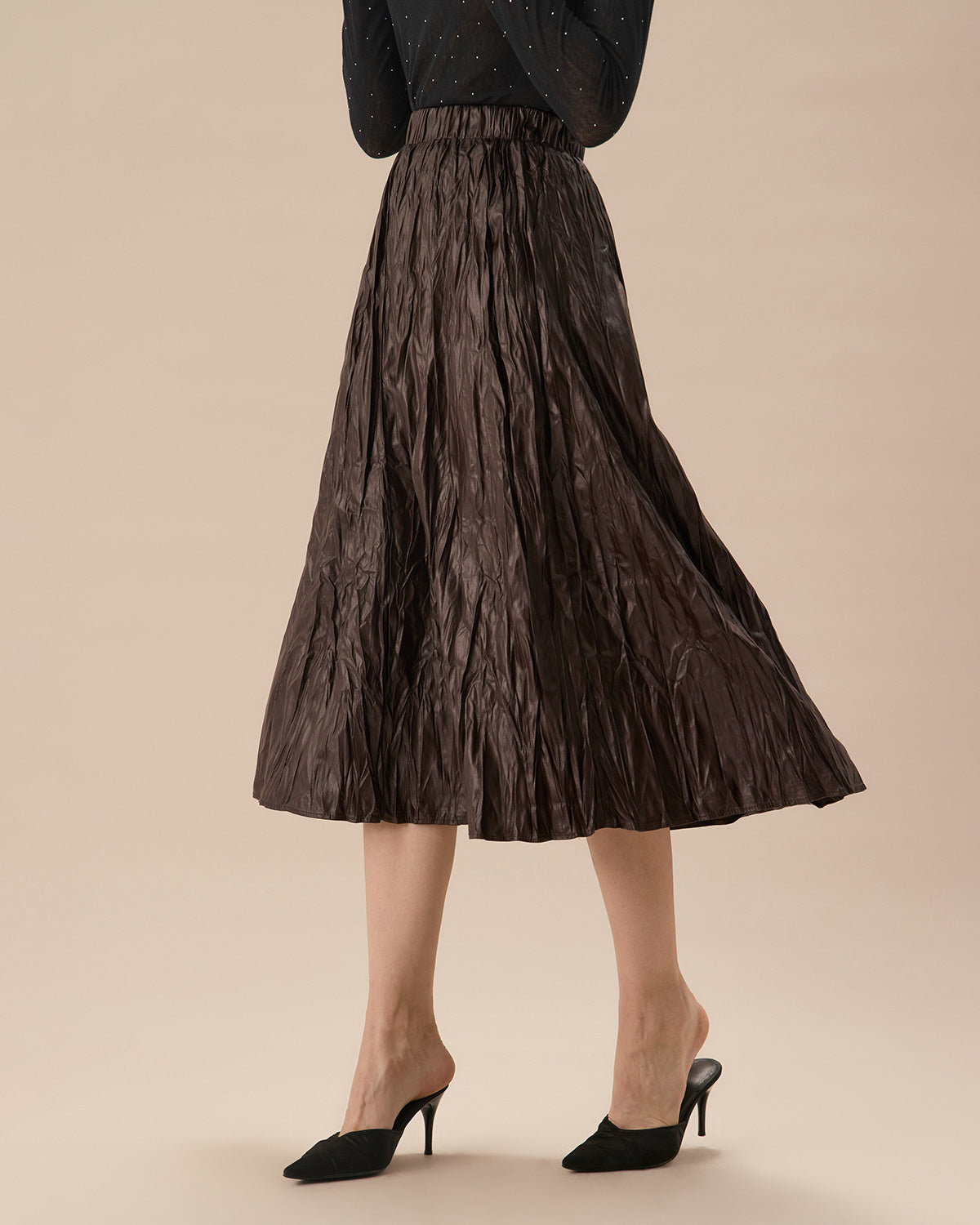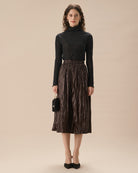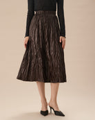 Belltoile™ Kahve Beli Lastikli Dantelli Midi Etek