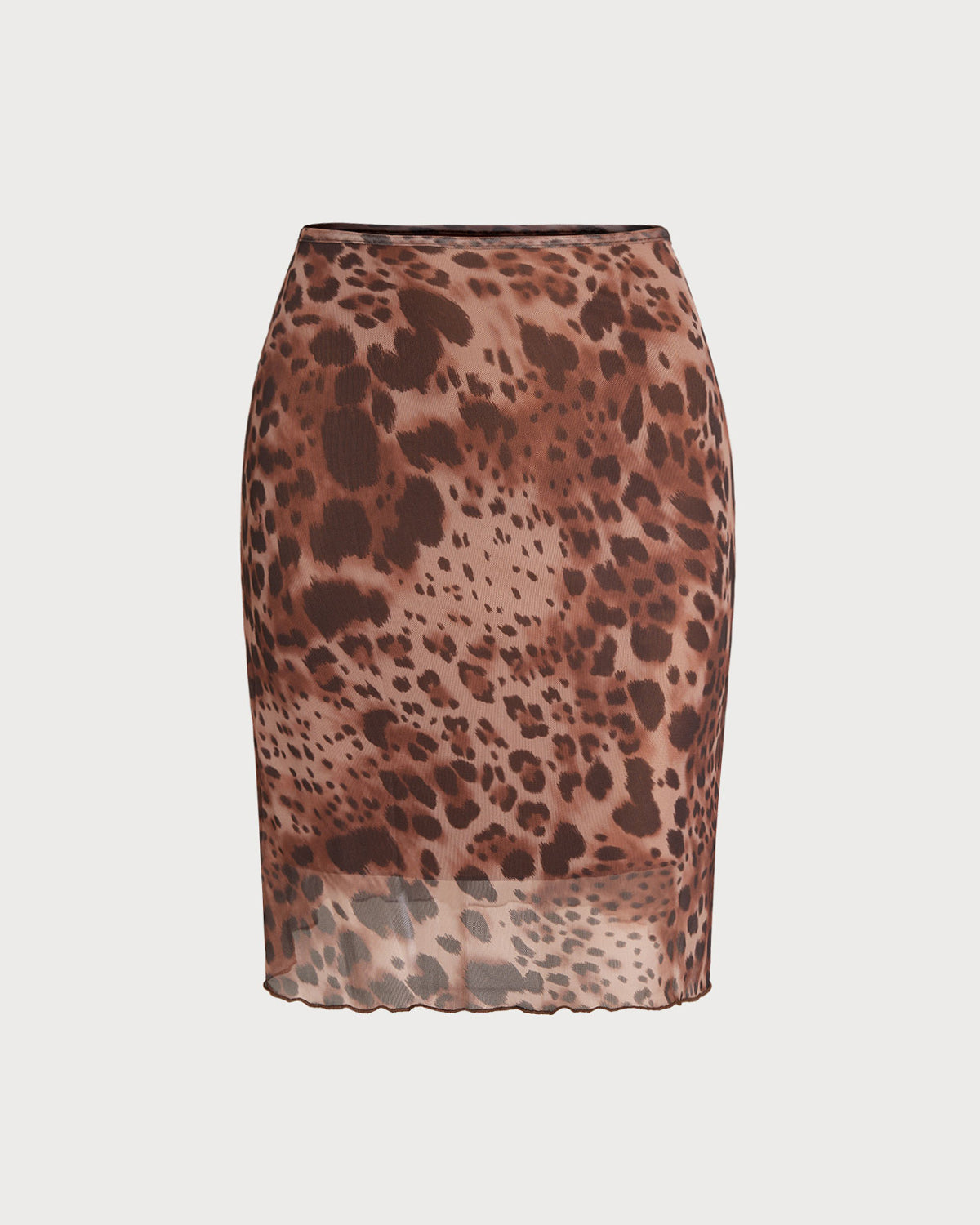 Kahverengi Leopar Desenli Lastikli Bel Mini Etek