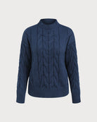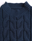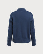 Mavi Yuvarlak Yakalı Dokulu Kazak