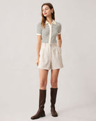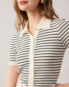Belltoile™ Yakası Düğmeli Çizgili Triko Üst