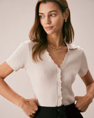 Belltoile™ Ten Rengi V Yaka Düğmeli Pointelle Örgü Tişört