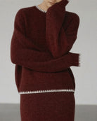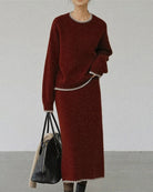 Şarap Kırmızısı Yuvarlak Yaka Örme Etek Takım