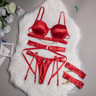 Belltoile™ 4 Parça Lingerie Takımı + Bacak Halkaları / INTIME - Kırmızı