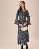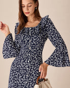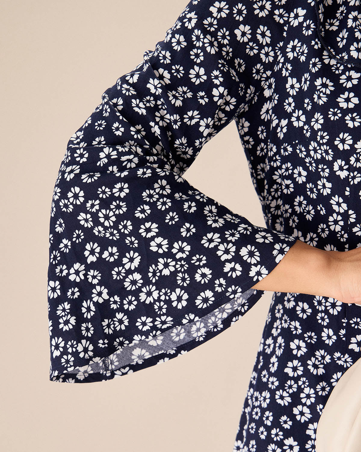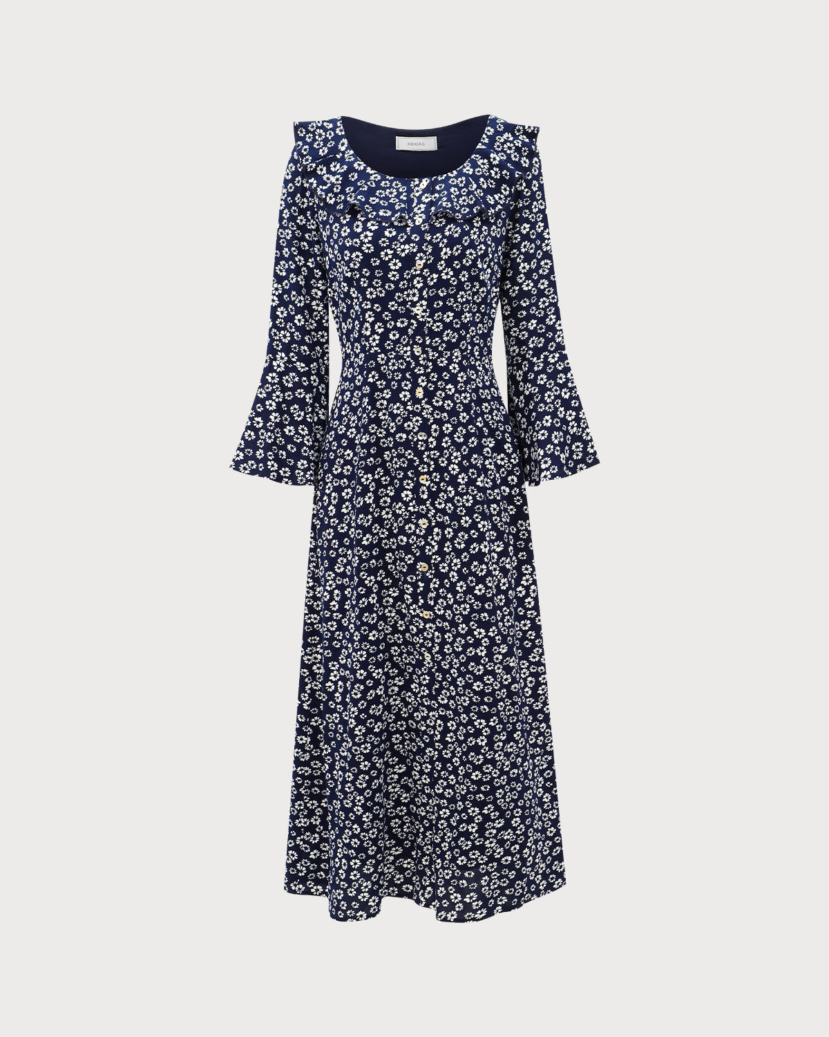 Belltoile™ Mavi Çiçekli Fırfırlı Şifon Maxi Elbise