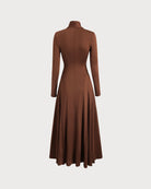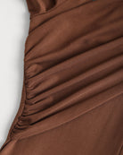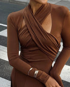 Kahverengi Asimetrik A Kesim Uzun Elbise