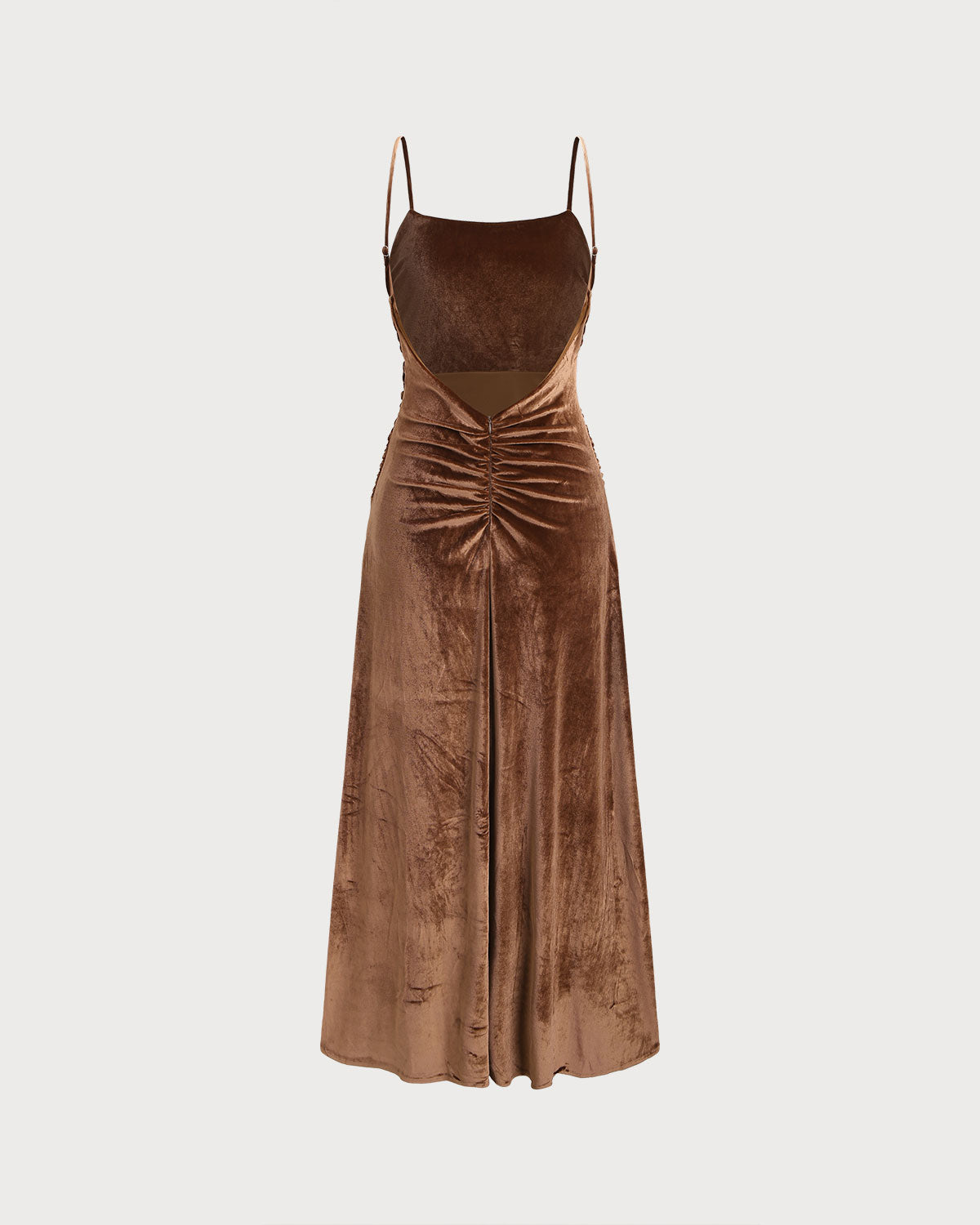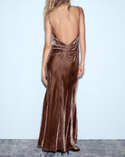 Kahverengi Kadife A Kesim Slip Uzun Elbise