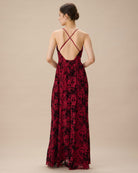 Belltoile™ Kırmızı Çiçek Floklu File Yırtmaçlı Maxi Elbise