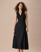 Belltoile Siyah Yakalı Fırfırlı Keten Maxi Elbise