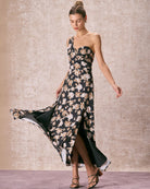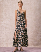 Belltoile™ Siyah Tek Omuz Çiçekli Uzun Elbise