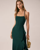 Belltoile™ Yeşil Fırfırlı Çapraz Askılı Maxi Elbise