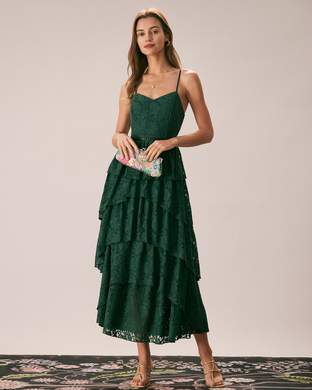 Belltoile Yeşil Kalp Yaka Dantelli Uzun Elbise