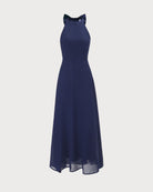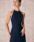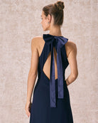 Belltoile Lacivert Boyundan Bağlamalı Sırtı Uzun Elbise