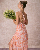 Belltoile™ Turuncu V Yaka Çiçek Fırfırlı Maxi Elbise