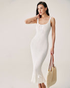 Belltoile™ Beyaz Deniz Kızı Örgü Maxi Elbise
