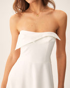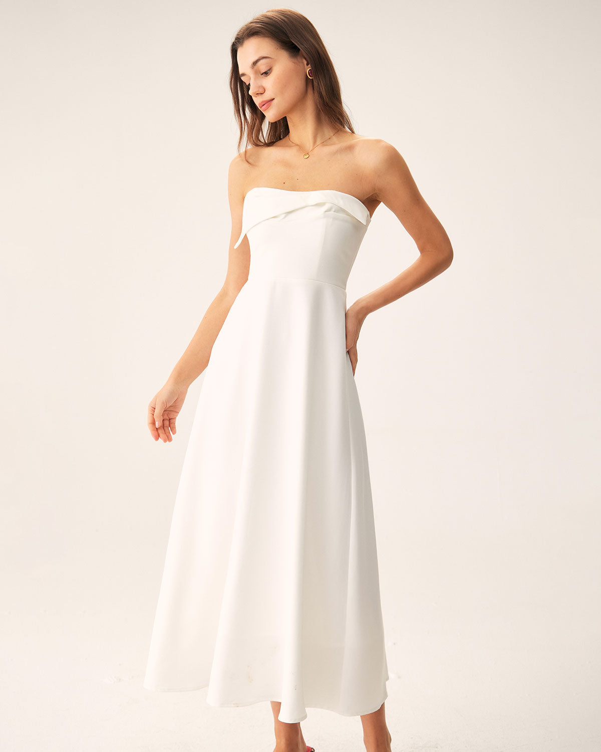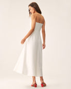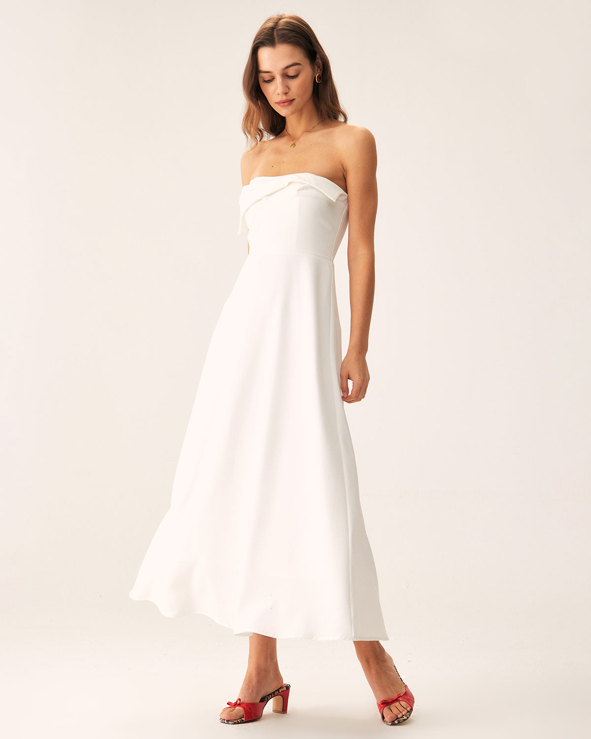 Belltoile™ Beyaz Straplez Büzgülü Sırtı Açık Maxi Elbise