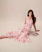 Belltoile™ Kadın Kırmızı Çiçekli Dantelli Kolsuz Maxi Elbise
