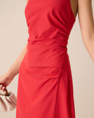 Belltoile Kadın Kırmızı Büzgülü Boyundan Bağlamalı Maxi Elbise