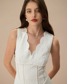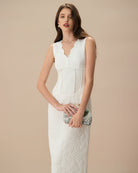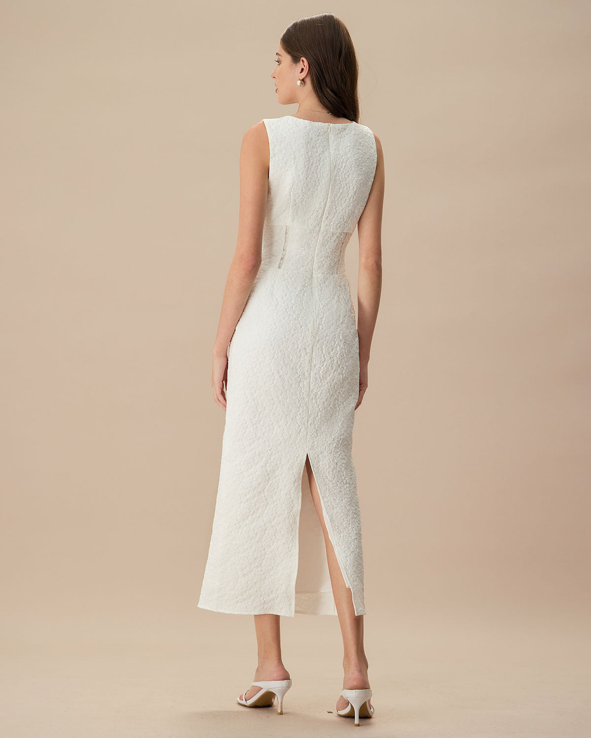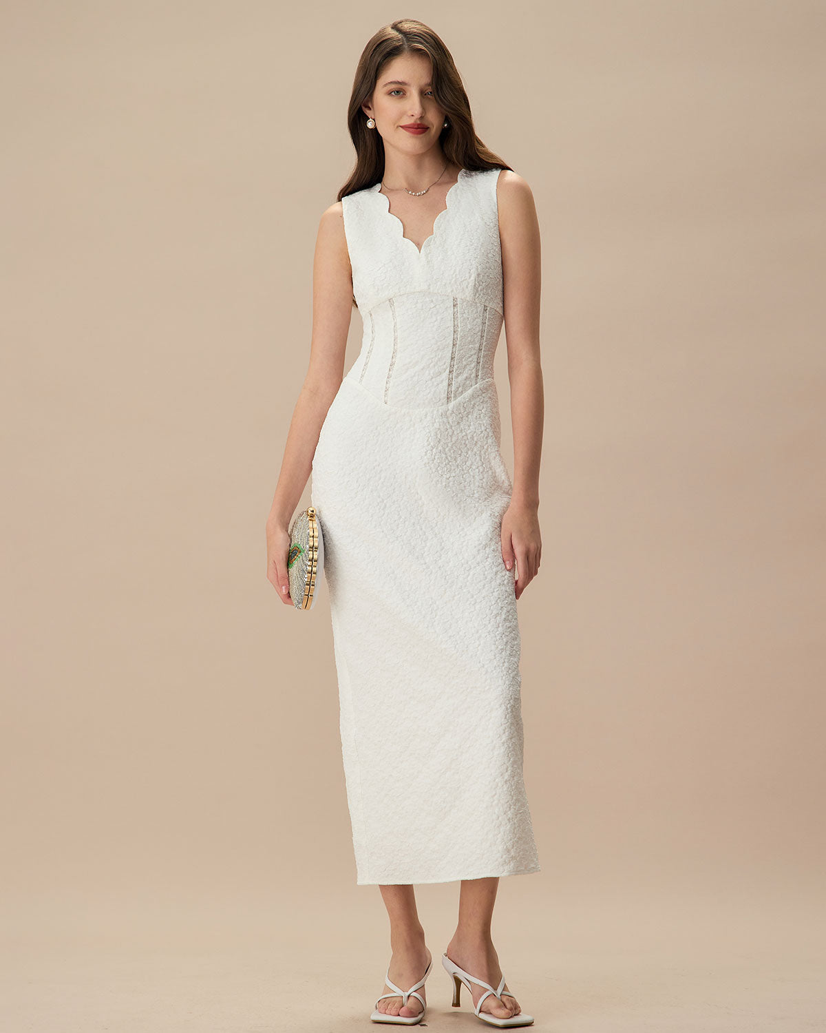 Belltoile Kadın Beyaz V Yaka Jakarlı Maxi Elbise