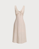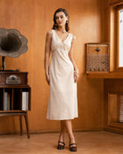 Belltoile™ Bej V Yaka Dantelli Kolsuz Midi Elbise
