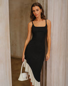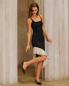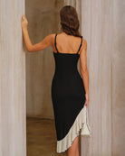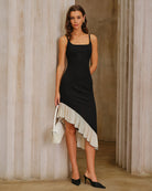 Siyah Kontrast Yüksek-Alçak Midi Elbise