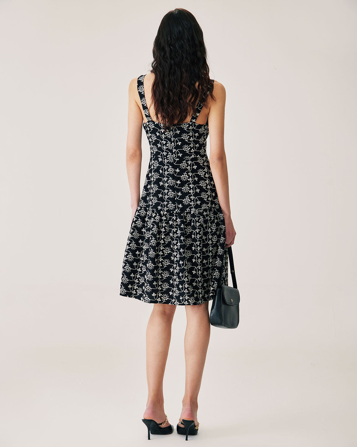 Belltoile™ Siyah Çiçek Nakışlı Slip Midi Elbise