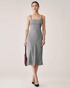 Belltoile™ Siyah Ekose Dantelli Slip Midi Elbise