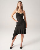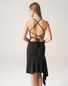 Belltoile™ Bettydress-Siyah Fırfırlı Sırtı Açık Midi Elbise