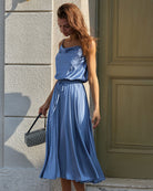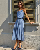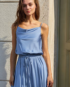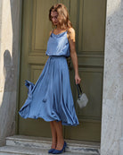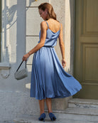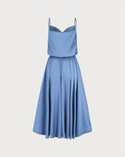 Mavi Kapüşonlu Yaka Midi Elbise
