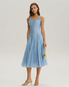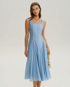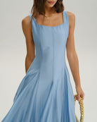 Mavi Kare Yaka A Kesim Kolsuz Midi Elbise