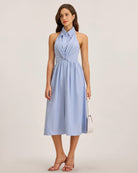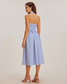 Mavi Çizgili Büküm Sırtı Açık Midi Elbise