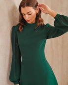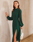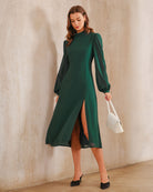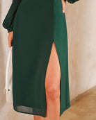 Yeşil Şifon Balıkçı Yaka A Kesim Midi Elbise