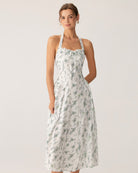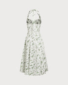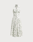 Belltoile™ Yeşil Çiçekli Dantelli Boyundan Bağlamalı Midi Elbise