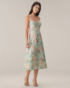 Belltoile Yeşil Çiçekli Straplez Midi Elbise