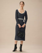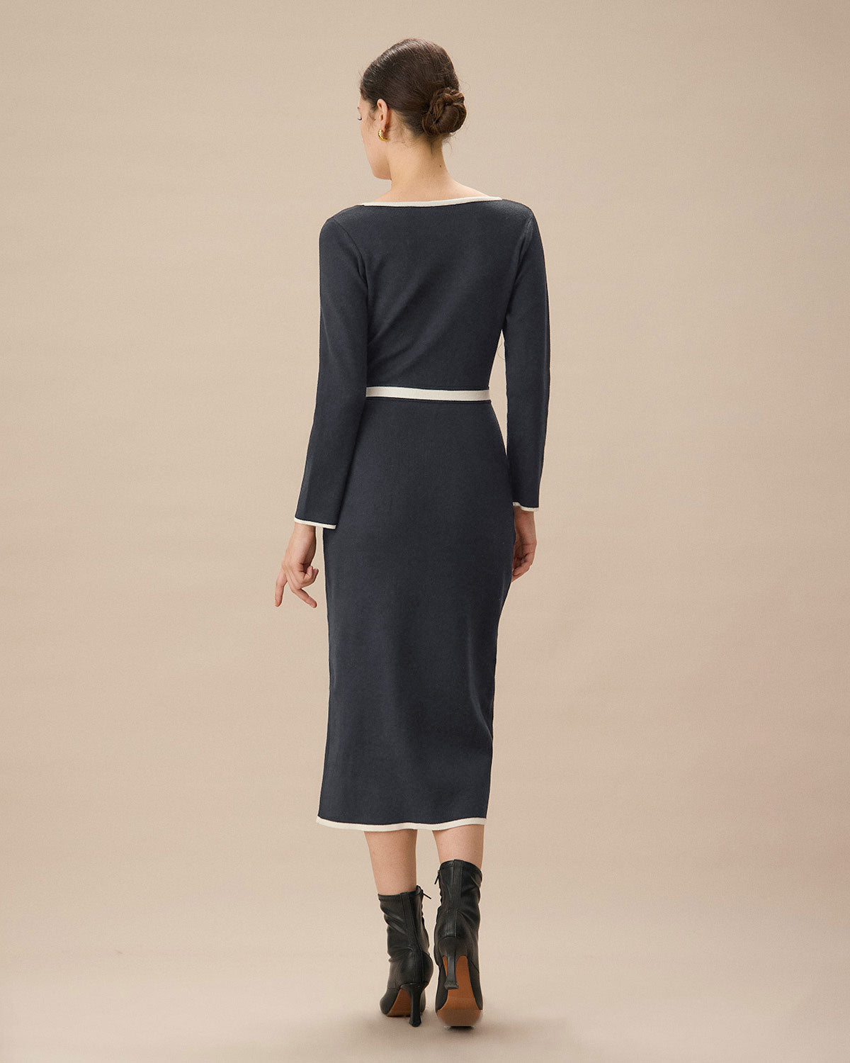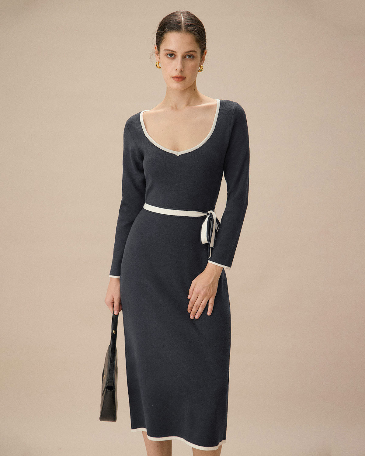 Belltoile™ Gri Kontrast Kravatlı Bodycon Kazak Elbise