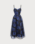 Belltoile™ Lacivert Çiçek Kalp Yaka Slip Midi Elbise