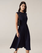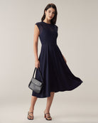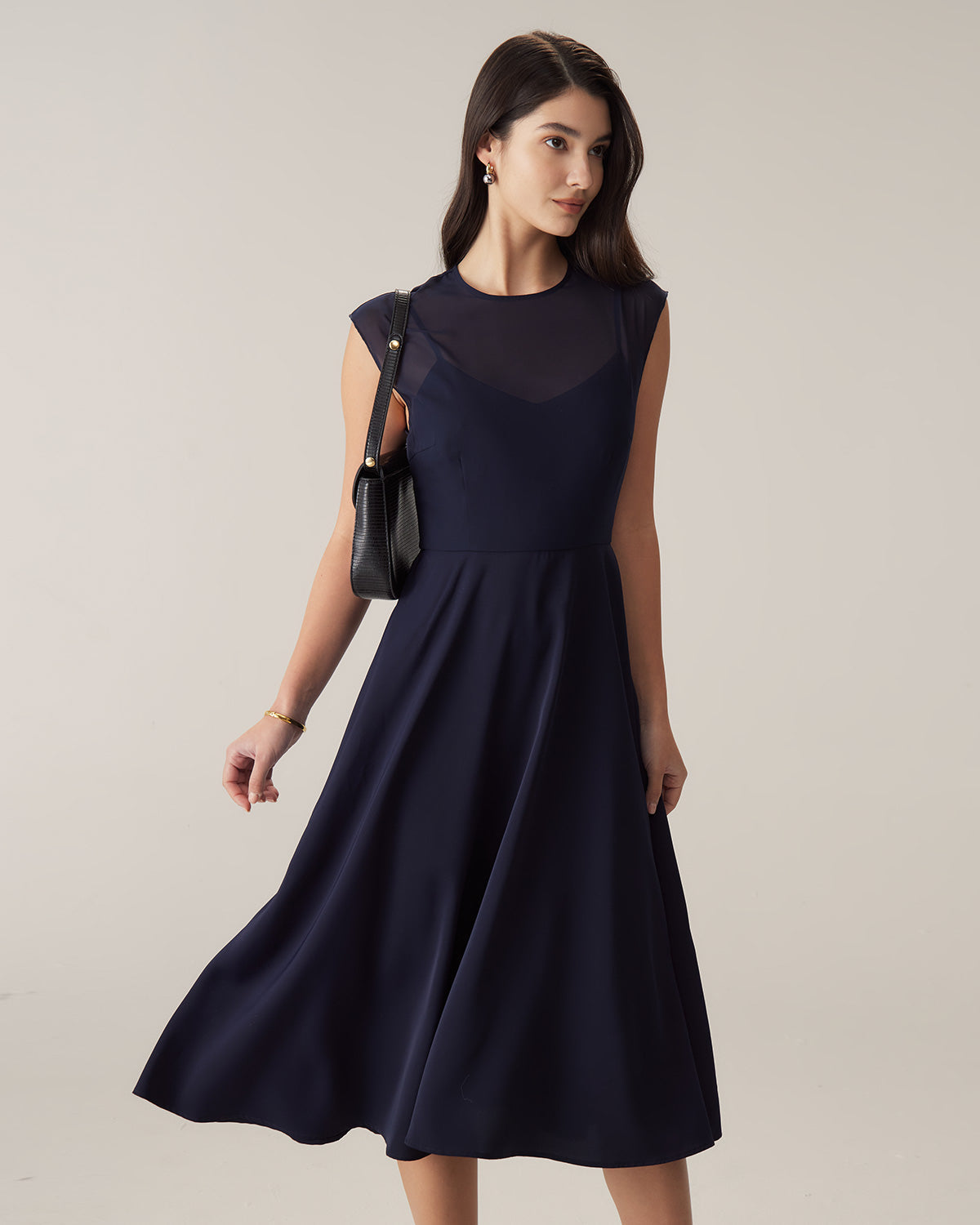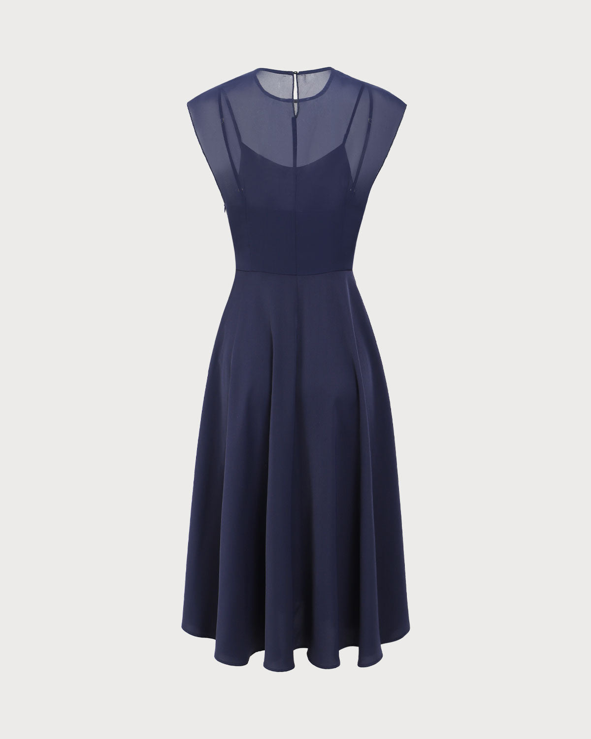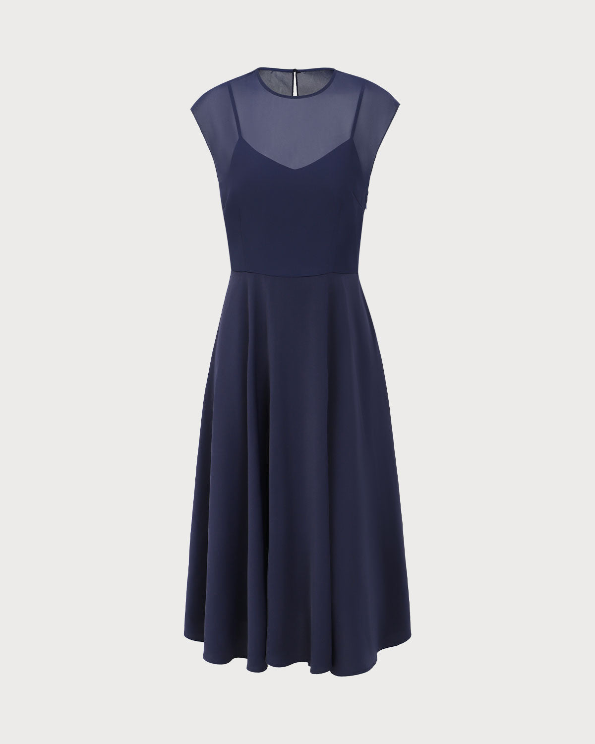 Belltoile™ Lacivert Transparan Kap Kol Midi Elbise