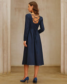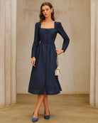 Lacivert Kare Yaka A Kesim Midi Elbise