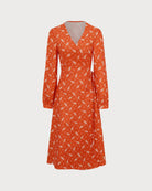Belltoile™ Turuncu Çiçek Anvelop Midi Elbise
