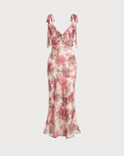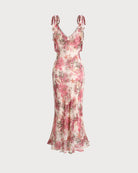 Belltoile™ Pembe Çiçekli Fırfırlı Askılı Midi Elbise