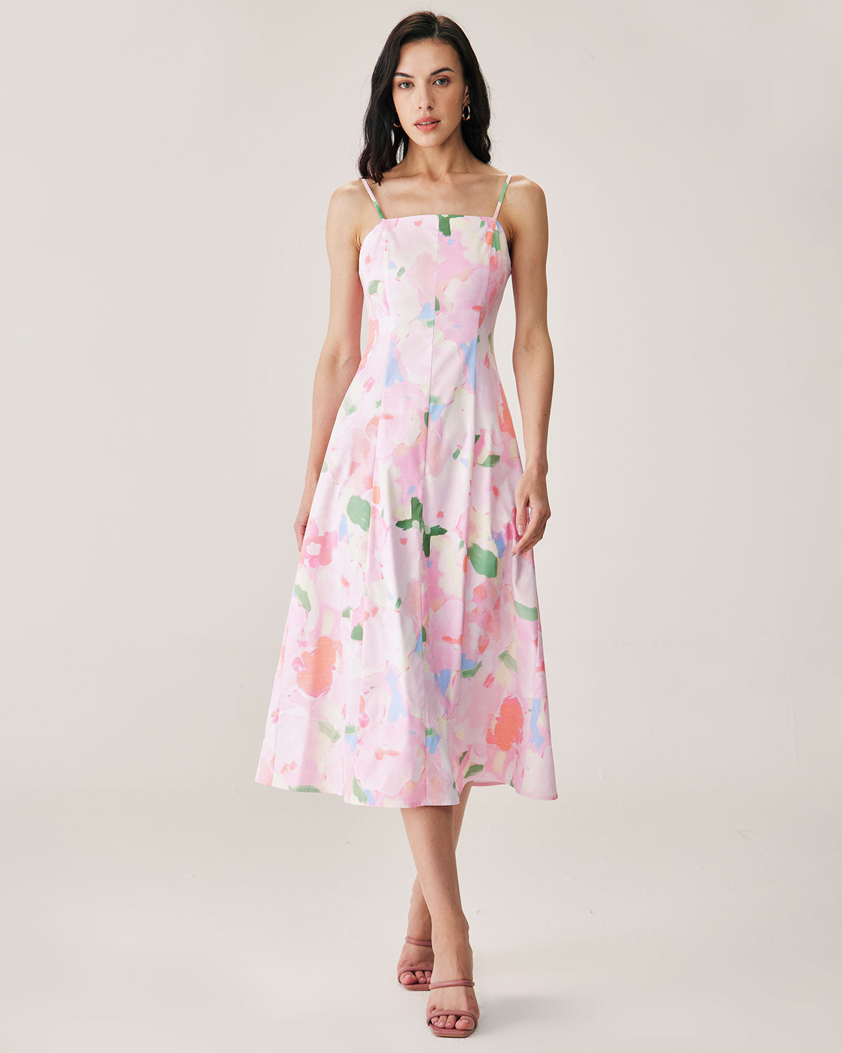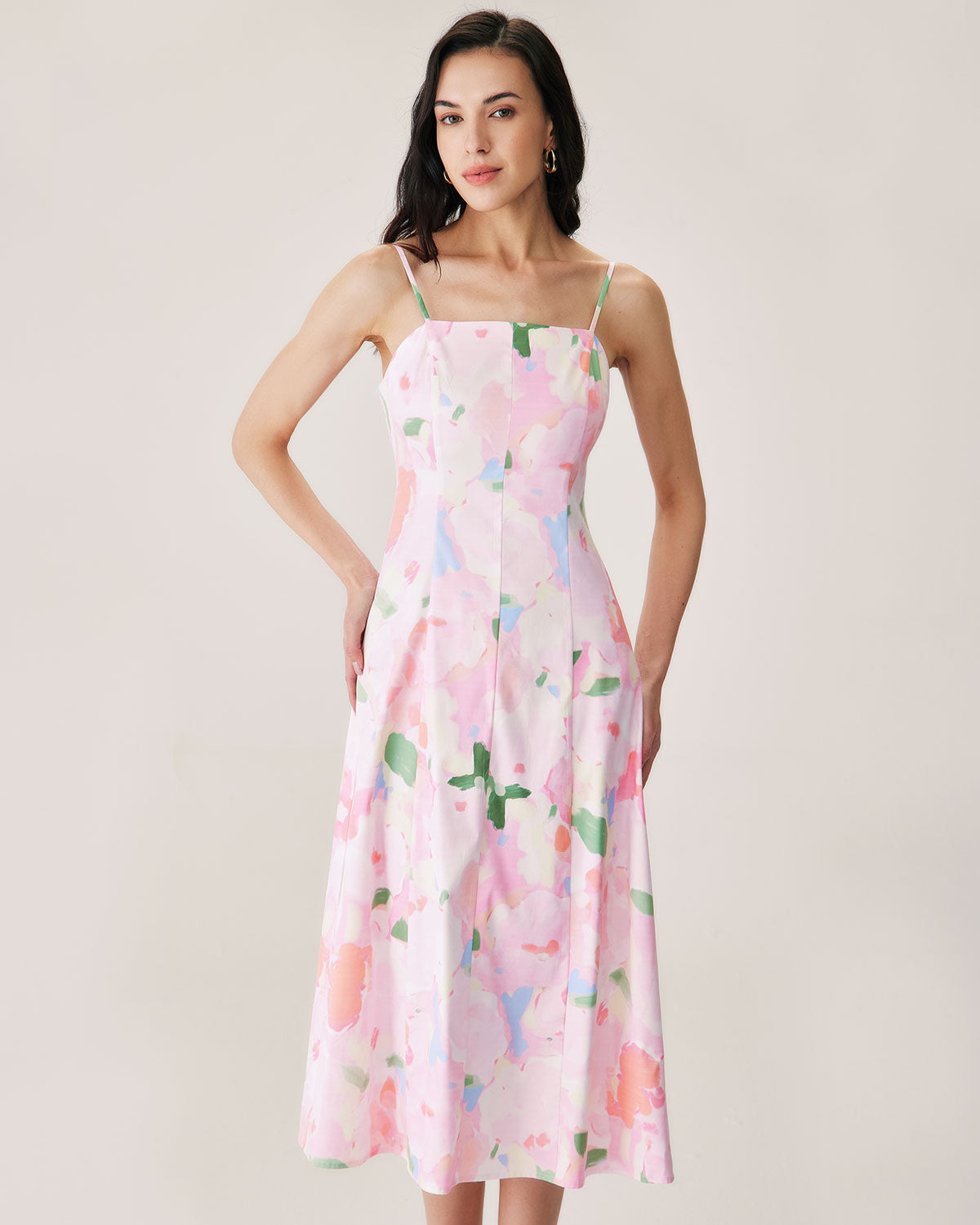 Belltoile™ Pembe Çiçekli Slip Midi Elbise