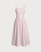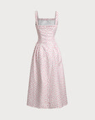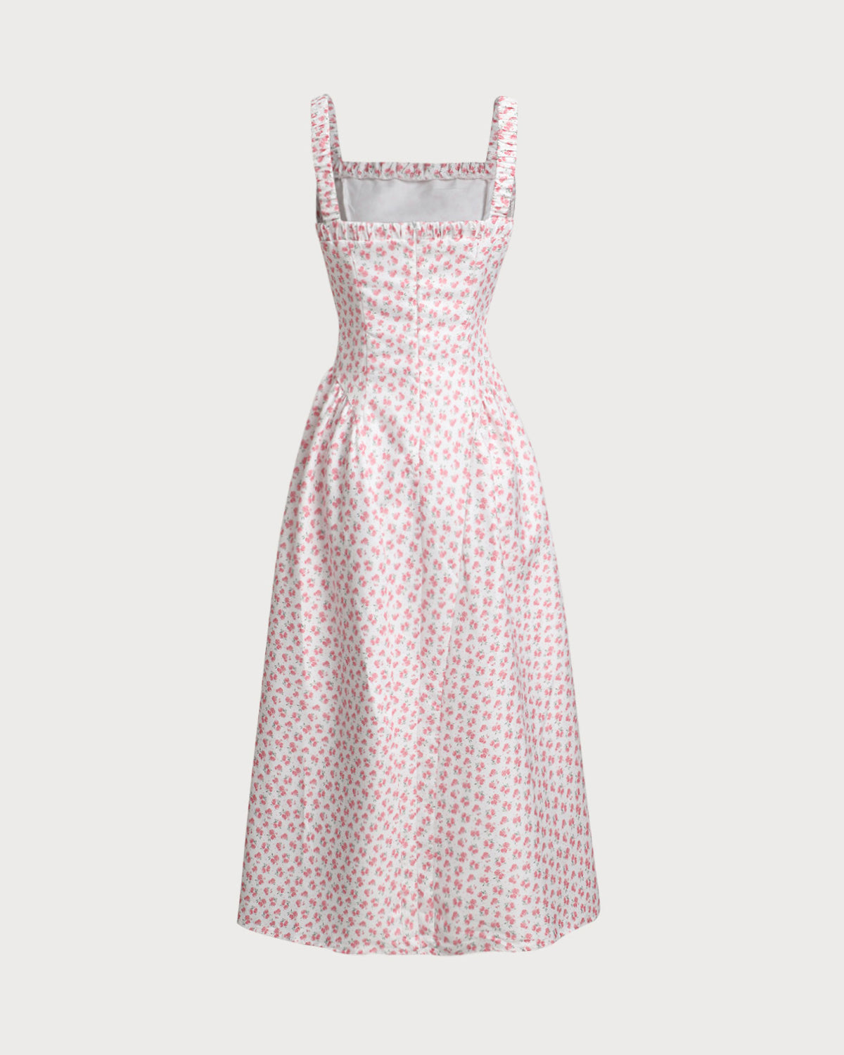 Belltoile™ Pembe Çiçekli Kare Yaka Pileli Midi Elbise