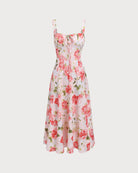Belltoile Pembe Çiçekli Kare Yaka Yırtmaçlı Slip Midi Elbise