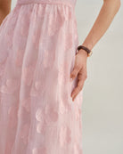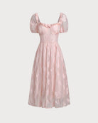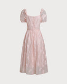 Pembe Kare Yaka Kabarık Kollu Midi Elbise