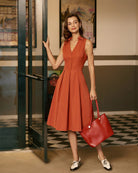 Kırmızı Düğmeli Kolsuz Midi Elbise