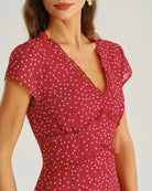Kırmızı Puantiyeli Kısa Kollu Midi Elbise